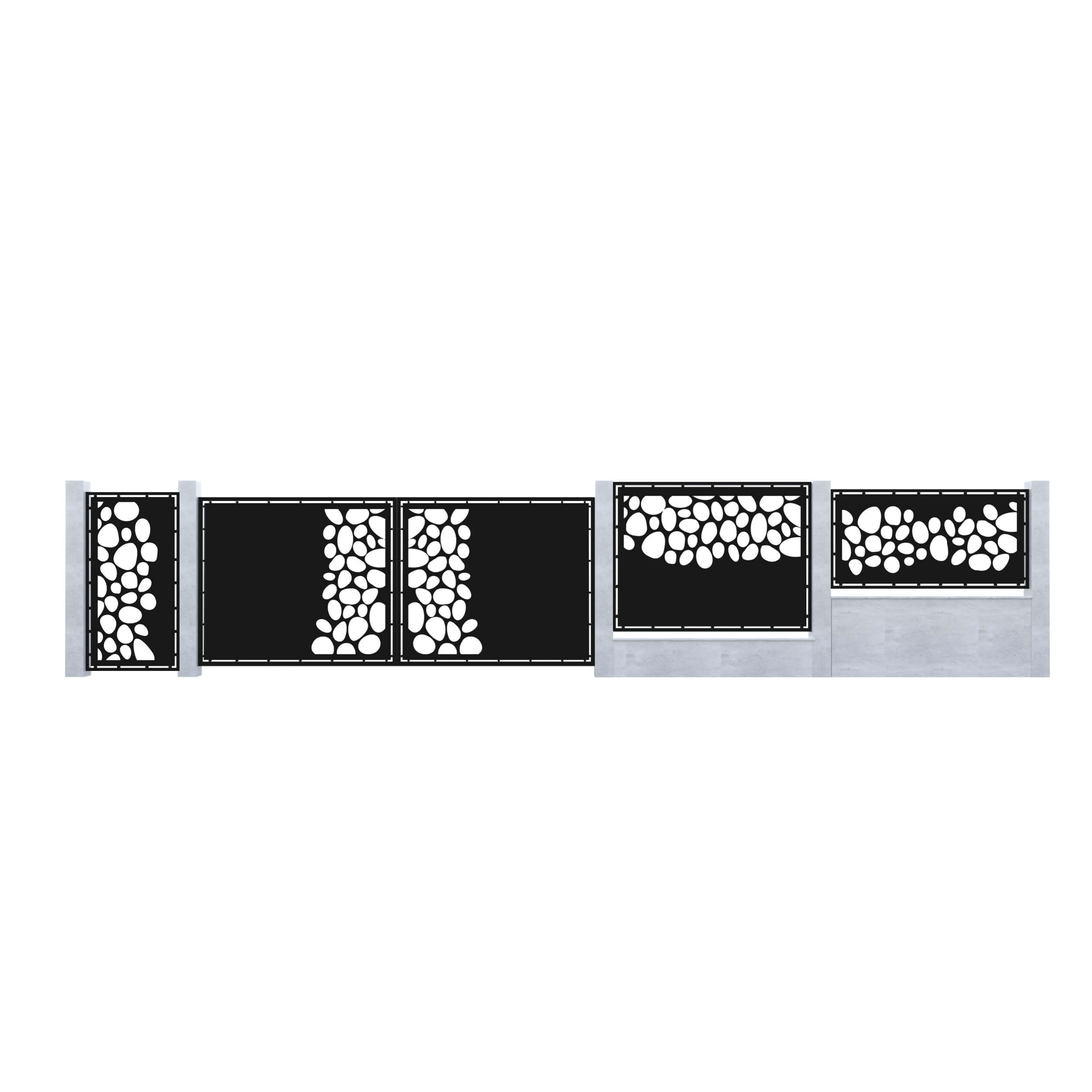 Cu un design precis și executat prin tehnologie avansată de debitare, panoul captează atenția prin modelul său distinctiv cu elemente geometrice, oferind un aspect vizual minimalist și placut. Acest panou metalic de gard va completa perfect spațiul exterior, integrându-se armonios în diverse medii arhitecturale.